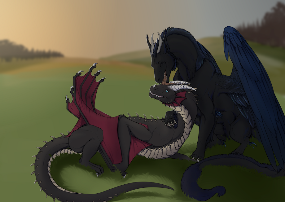 No better way for a lovely wyvern like Tawyr to relax than in the embrace of a friend that offers him a full grooming experience before wrapping him in a nest of warm fluff and silky feathers. Laze thee well, vernfriend!