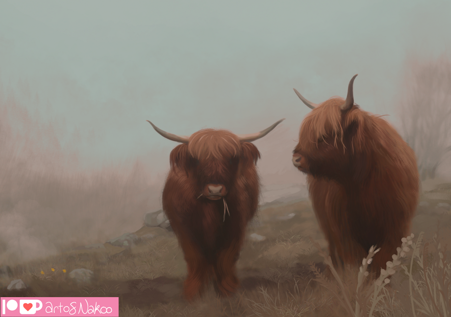 One of a 5 part series I painted of my favourite animals, Cows. This one is of Highland cattle.