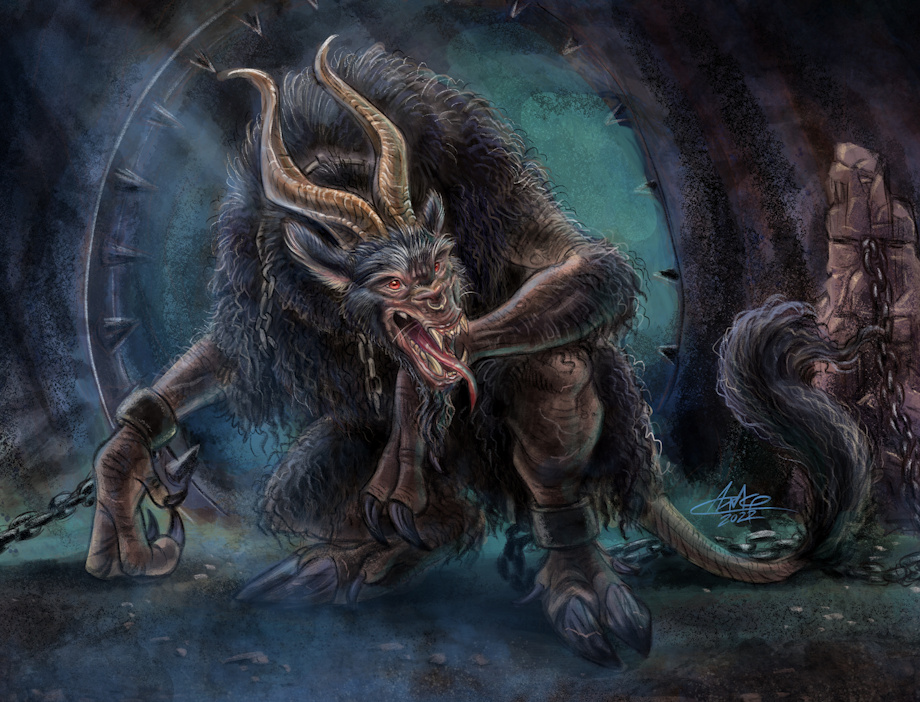 I’d been playing with different original concepts branching off of the whole “Krampus” motif for a story I’m developing, and this was the result.