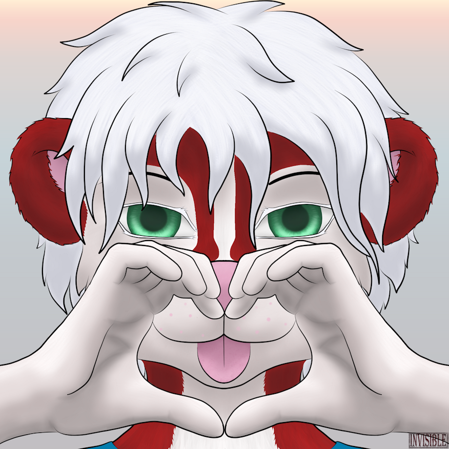 Travis gives the sign of love with his tongue hanging out. Art from InvisibleCatDragon