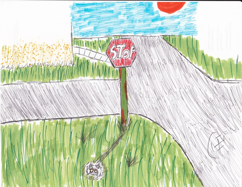 my sona can travel through shadows, but I dont often have him do so...... so...... goofing around, I decided to draw him popping out of a shadow of a stop sign