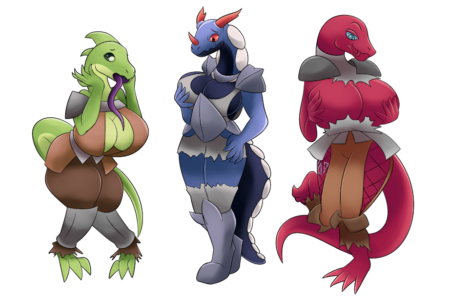 When the faery dragon revealed himself, the knights were no more. In front of him were total bimbo lizardwomen. Licking his lips hungrily, he knew he was going to spend some very entertaining nights.