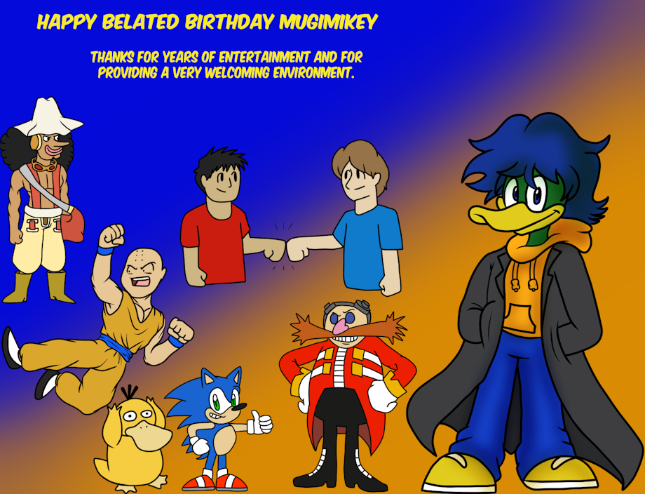 A late birthday drawing I did for MugiMikey that I wanted to draw for him for a while. This started out with the drawing of Mugi the Duck that he did for the how to draw stream from the week prior to me drawing this.