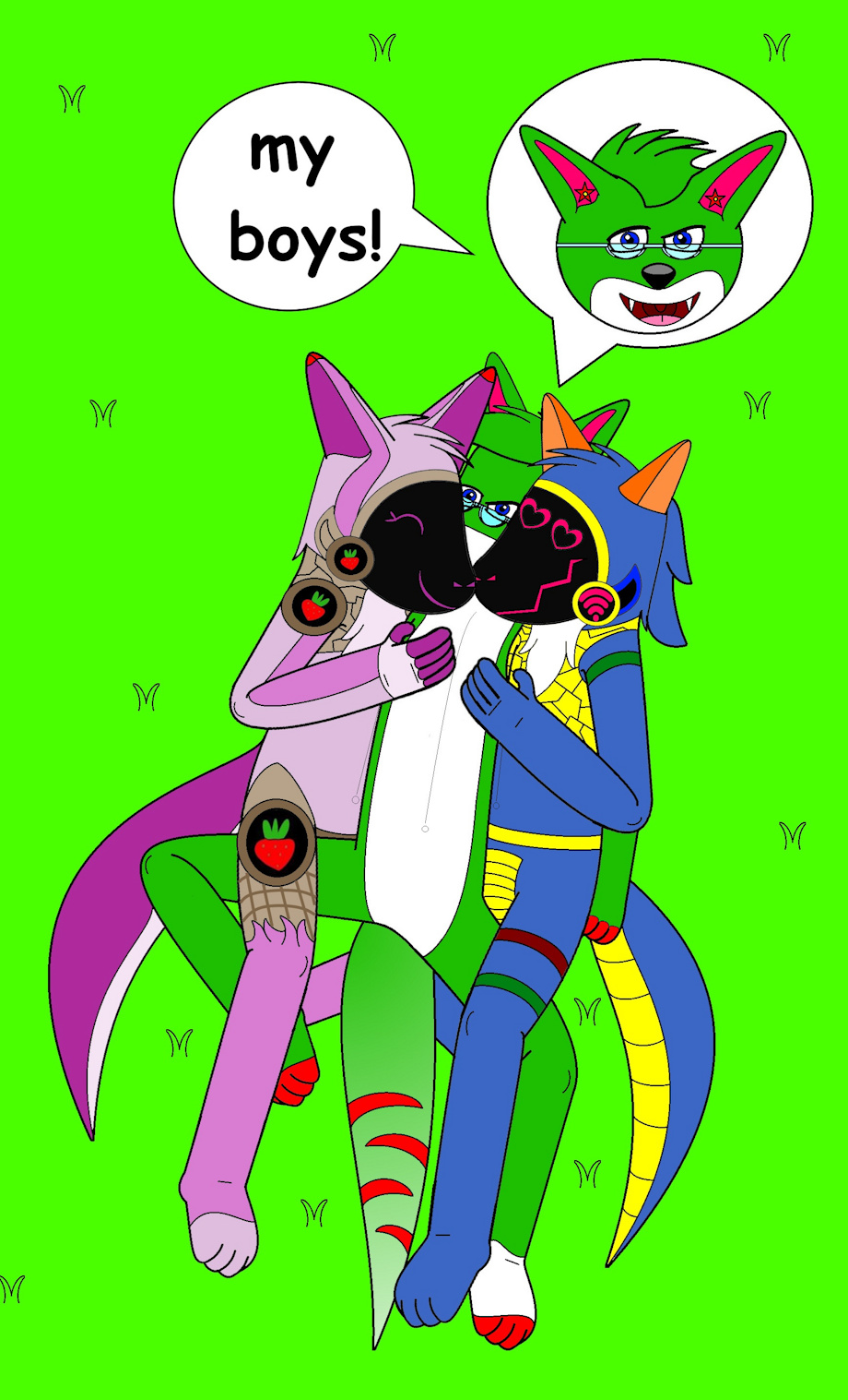 and for a personal friend of them berry the protogen! so any way zane asked if i would add him and F in a piece if it was possible if i could do cuddle drawing with the three of them and so here you see all 3 boys cuddling together frankly covered in love friendship and biotechnology X3 so any way zane and frankly hope you guys like it and i hope your friend berry likes it too <3 hugs!!! °3° <3<3<3