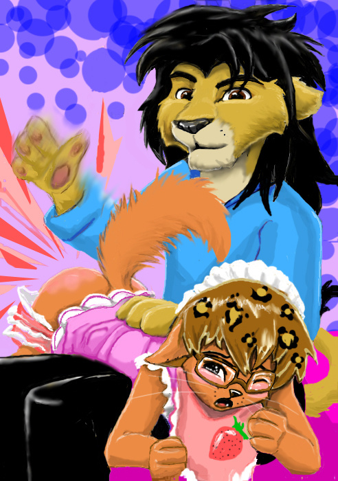 Poor little Speck gets a spanking to make his bottom match his sissy clothes! His daddy knows that sissifying the little kitten is the only way to get certain points through, since bruising his pride is sometimes the only way to make sure it won't get in the way of being a good boy in the future.