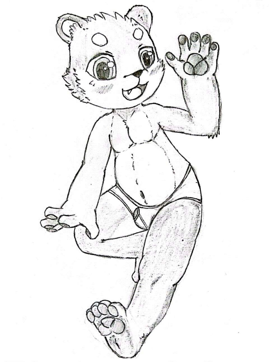 Aside from failing at the facial features and turning this boy cub into a girlish boy, I think I managed to keep the proportions and make something more original. Had to reference the right hand (down to the leg) since it was rather hard to imagine it.