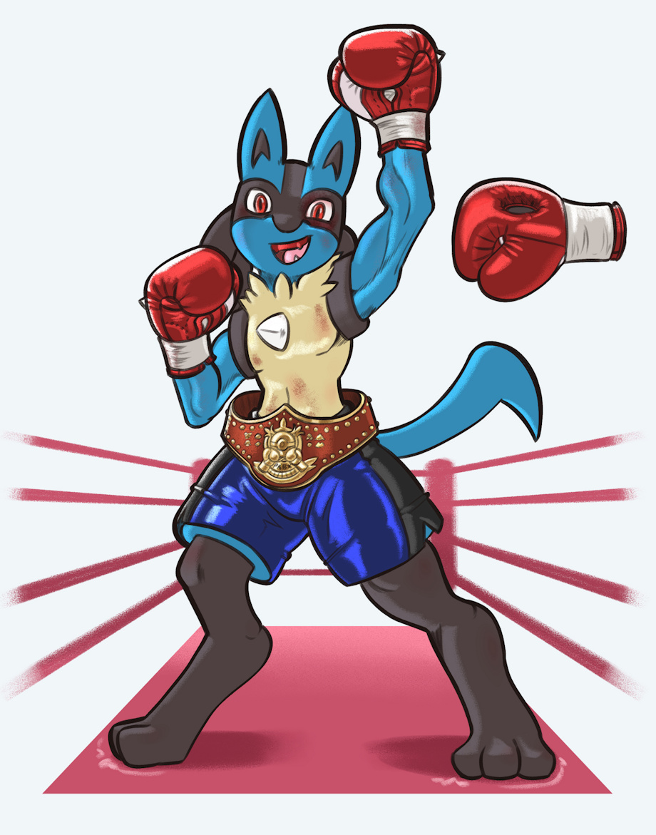 featuring their Devv posing after a fight. also included is an idea of what his glove would look like when not worn, as well as a version with a belt, and bruises.