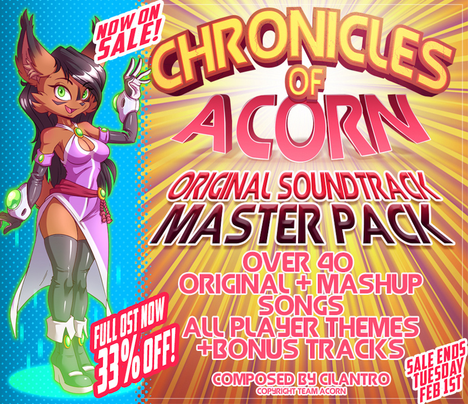 Hey guys! Just wanted to let y’all know we’re doing a sale on our Payhip for the Chronicles of Acorn original soundtrack! The Master Pack, all 40+ songs and bonus tracks, now 33% off in the store! Just use promo code COAOSTSALE at checkout! Follow the links below to see the store.