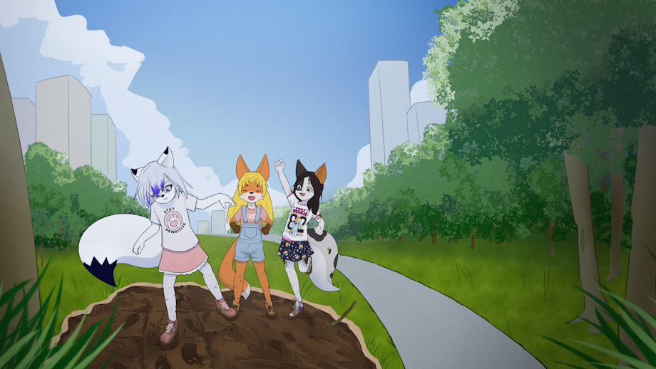 The Fluffy Tail Gang is at it again~ Hopscotch is more fun if it's played in splashy areas like puddles or mud~