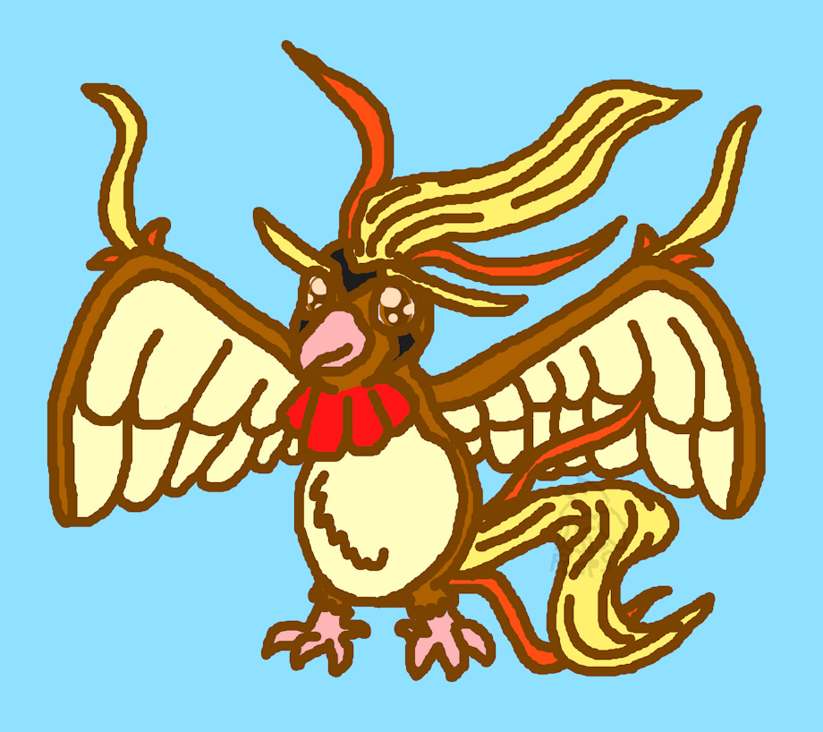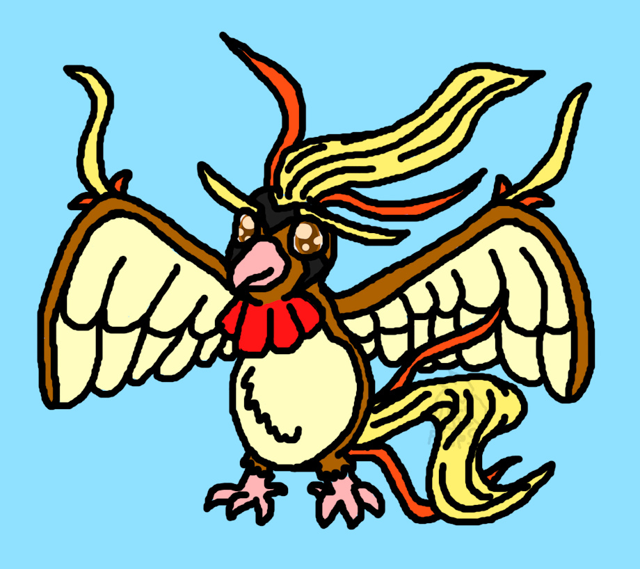 yes i also tried redesigning pidgeot. just some cool ideas. this could be a redesign or a mega form. i really like this one. i always thought pidgeots design was lack luster and not detailed enough for a 3rd form. it just looks exactly the same as the last one but bigger lol so here i added more bells and whistles to make it more fancy. what do you think?