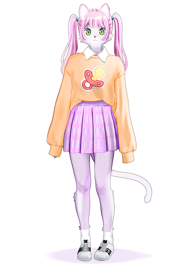 Tsundere cat whose paws are too big for her sweater cuffs and is baby