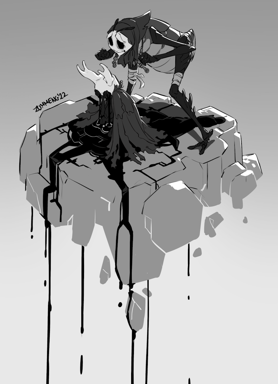 Yet another Hollow Knight fanart I was hesitant to upload, because just like the last one, it turned out very edgy (and somehow the anatomy is kinda off with the style too). But I liked the concept of the small, floating island, and with the content break, it seemed like a good time to share it.