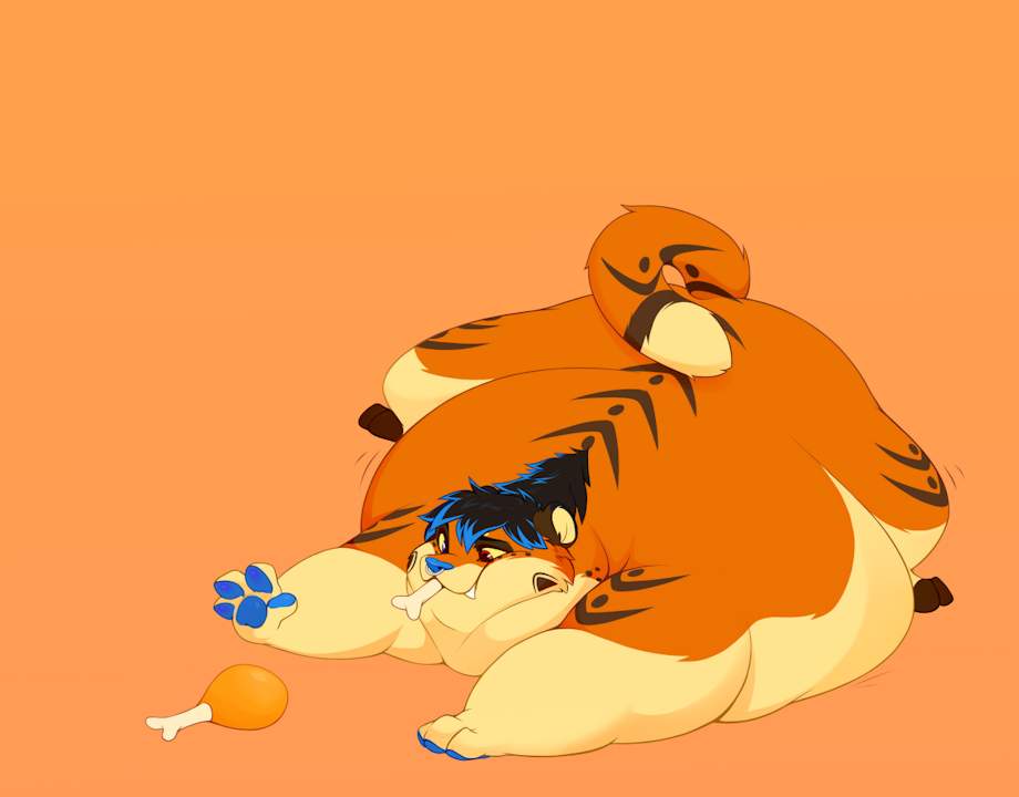 Tubby fatty Hunter can't quite reach his dinner. :P Maybe scoot it closer to him and...give him more food?? Yeah, that sounds good!