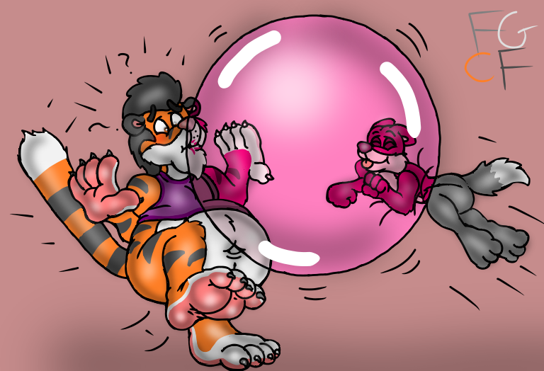 featuring his woof Wesley leaping into a bubble which me chubby tiger Terrance is puffin but somewhat surprised heh^^.