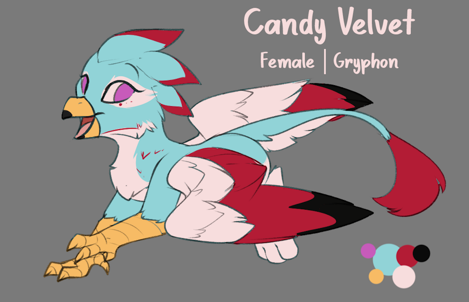 Candy Velvet! An exotic performer, striptease, pole dancer, and even with her own OnlyFans. She’s a very bubbly and down-to-earth gryph with confidence to match, and the teasing certainly doesn’t stop for those she’s close with when she’s not at work~