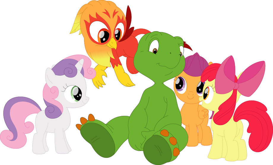 I felt that Franklin turtle should meet the Cutie Mark Crusaders for the first time. While the four Equestrian children were weirded out to see a talking bipedal turtle with no shell, they still consider nakey Franky to be a nice guy to befriend.