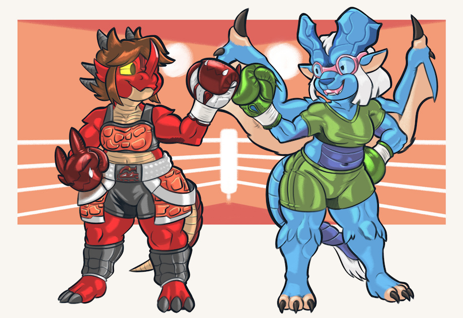 's Blaze touching gloves with their Mindy, who appears to have become a lunastra