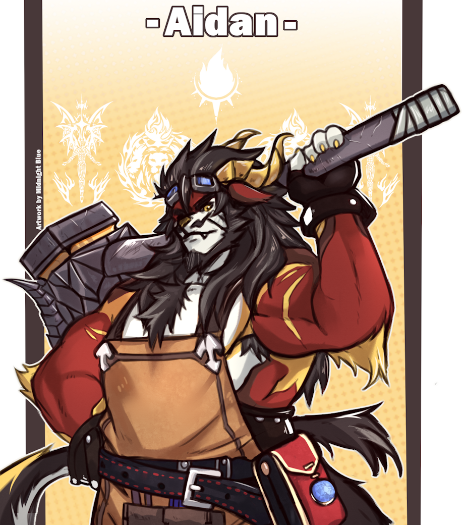 It's been a long time since I did this kind of thing but here's the new character that enters the saga of my fursona HAHA. This and Aidan the chief blacksmith of the After district being bastard son of a noble Aidan learned the skill of Forge very early thus having a master to learn how to use his skills, at the age of 25 he opened his first shop and gained fame as the greatest blacksmith doing so. being one of the best blacksmiths in the world. Aidan is a character based on one of my friend Yuiichi heinhz - YuuichiHeinhz