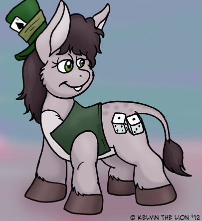 Here's something I created in the zoo at Anthrocon. She's Snake Eyes, the gambling donkey. She brings gambling to Ponyville and she's very tricky. Can donkeys earn cutey marks? Perhaps they can if they are talented enough at something or perhaps it takes one of Zecora's potions to make it happen.