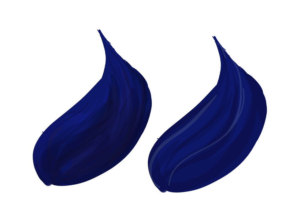 right is a combination of a few layers of shadow and with soft shading as well, multiply effect added, then overlay of light with both hard and soft shading, and the left one is just hard shading with two layers of dark and one layer of light, my current preferred method. now the hard part is translating that into more complex pieces.