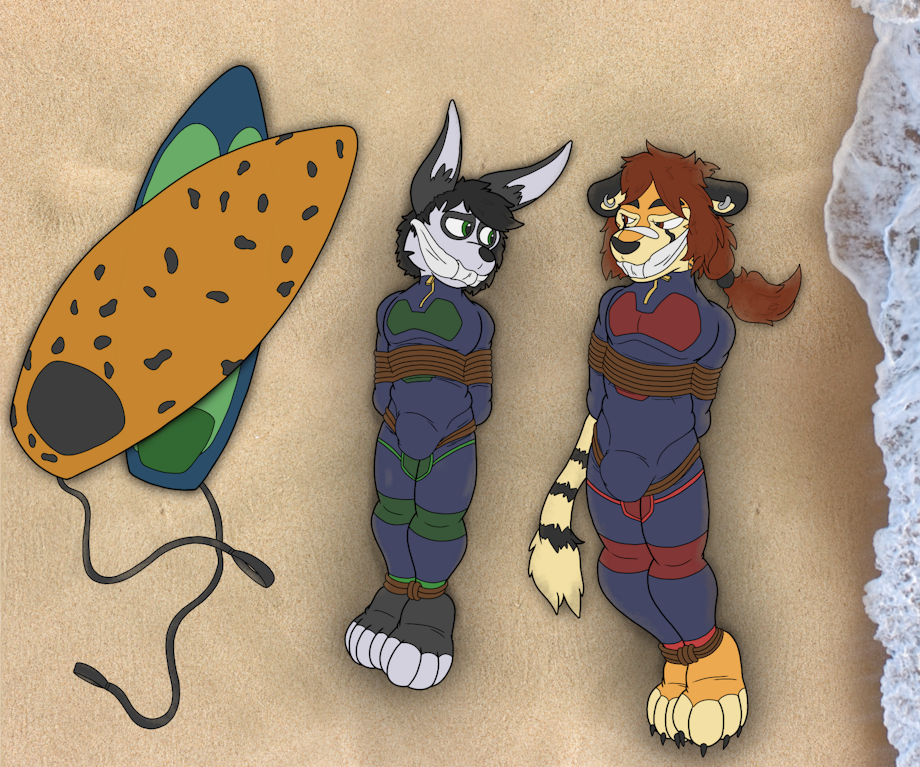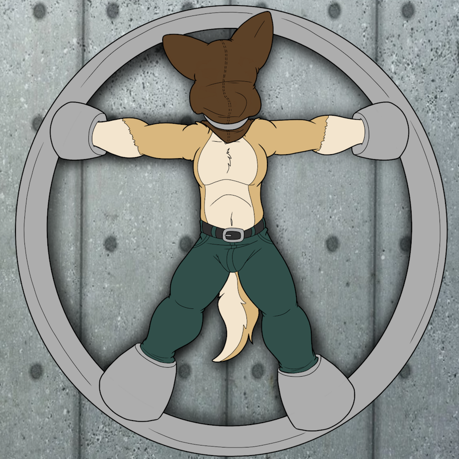 A follower on FA wanted to see their character Dax all caught in a metal ring apparatus!