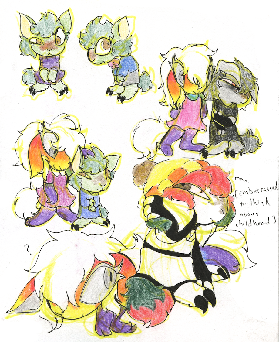 my kyrii oc Lux has been through various different PB changes throughout her life. reflecting on them makes her feel embarrassed (though her sister was simply fond of her throughout it all)