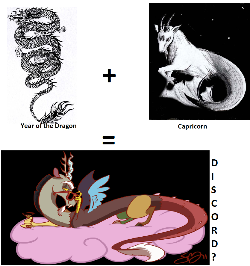 I was born in the Chinese Year of the Dragon and am a Capricorn. Then, I realized. Chinese Dragon + Capricorn = Discord from MLP.