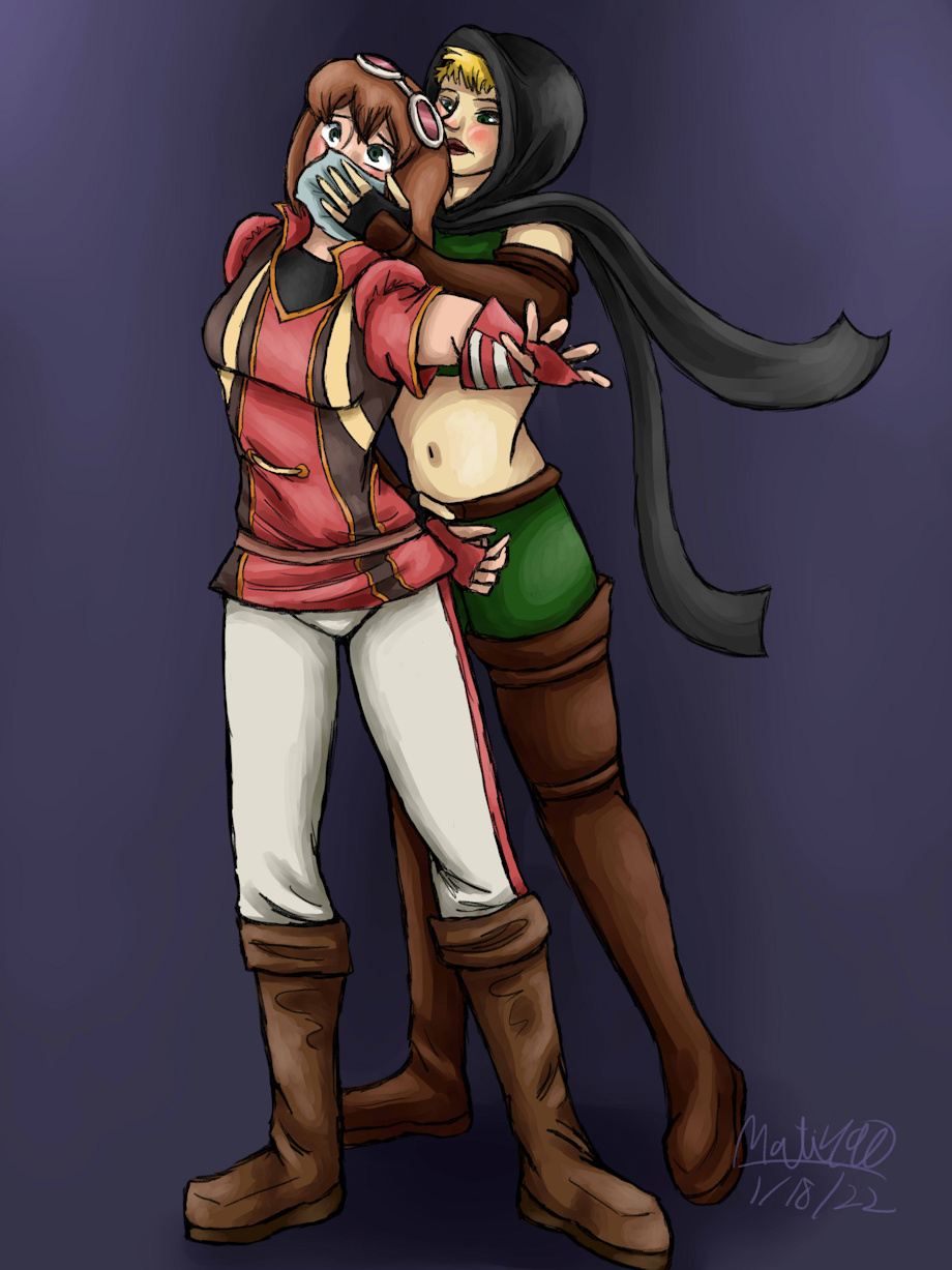 Here's another commission I finished for Kalebold on Deviantart of their character Rita getting caught by a character based off of Unrelatedpants ' character, Alchana.