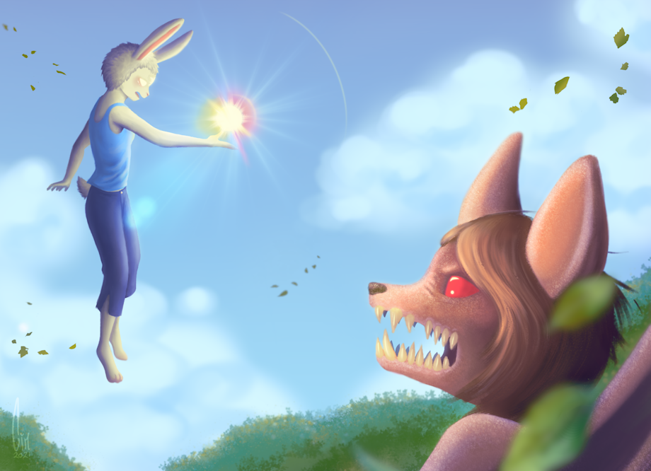 I know it's been kinda dormant, what with work and pandemic and all. But it has been on my mind and i do need to start chipping away at getting the last(?) leg of it done. Till then, please enjoy this lovely illustration of the climactic scene from Lonely Oak Chapter 76 - The Woods. Gin did a spectacular job not only capturing the scene, but also transforming Rini into the monstrous depiction from Lyza's dream, I absolutely love how that turned out!