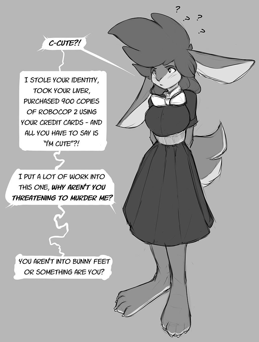 *grins* One, I don't need it with what I am... Two I managed to get that reversed by returning most of the copies, keeping one to replace the disk you broke... Three that outfit screams that term of affection and four... The French has a word, La Petit Mort... the little death.... you will experience that until I think you learned your lesson Little One.... First lesson... Never screw over a Demon rabbit.