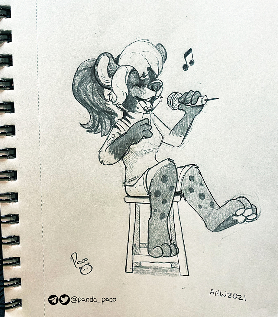 Picture for Cassidy Civet singing a capella. Sketch done during Artist Alley at ANW. Traditional. Pencil.