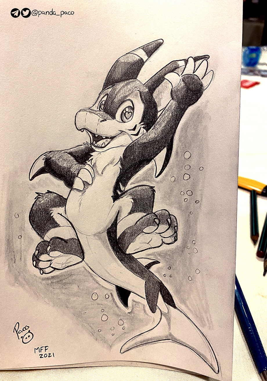 Dusk, a very cute shark with pawsies swimming around.
