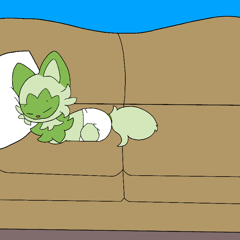 Here's my new oc based on the new grass starter Pokemon Sprigatio, her name is Bakeneko and she's Elise's pet/starter Pokemon. She loves hanging around in gardens like the one Elise mataines (so she'll be seen particularly whenever her master is doing gardening) and playfully hiding Judd's slippers around the house.
