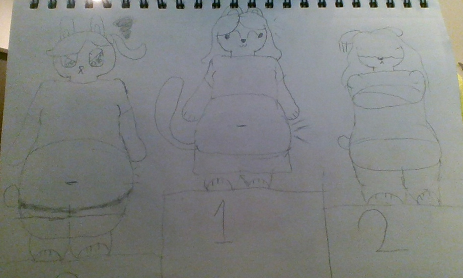 Of course, win, or loose, eating so much took quite a toll on all 3 of their frames, leaving their big, stuffed, chubby, tummies on display for all to see ^^