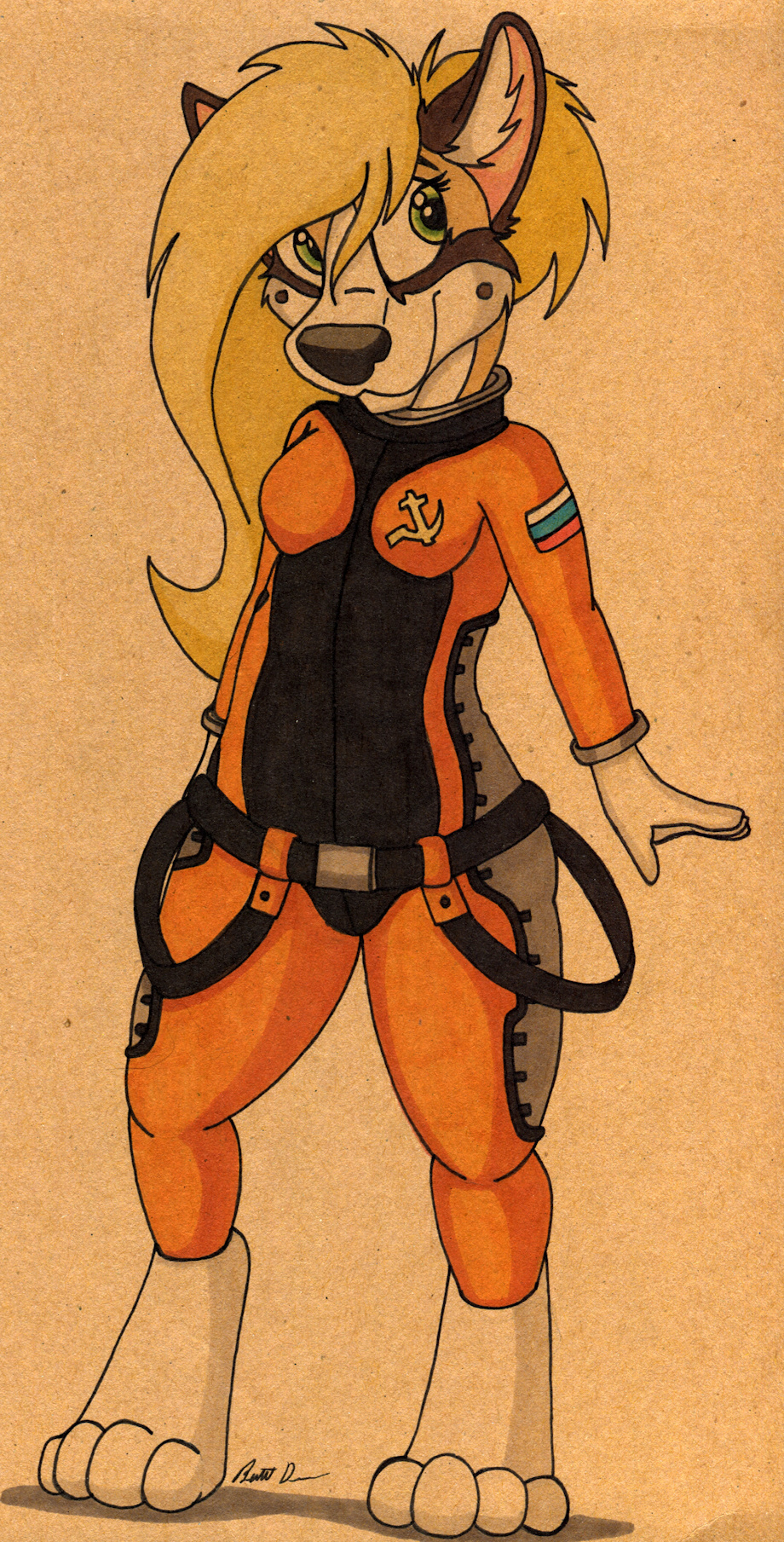 An old sketch of a lovely cosmonaut corgi sweetie i did on brown paper.