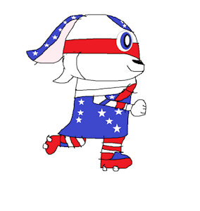 "Mom, it's me," Cream said as she looked at herself. Her fur had changed to a white color, with red stripes on her arms and legs. Her dress had changed from orange to blue and had stars on it, the bow being red. Her shoes were also blue-and-red and had wheels attached to them. She saw her reflection in a plate, and saw her markings were blue with white stars, her eyes were blue, and a white stripe was over her eyes.