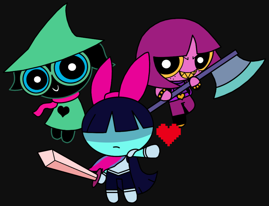 In this, we now have Blossom as Kris, Bubbles as Ralsei, and Buttercup as Susie. Tried basing it off of which character's personality/role in the group was the best fit for each one. Ralsei & Bubbles being the sweet & kind ones, Susie & Buttercup with the "hit first, ask questions later" mentality, and while Kris is technically a blank slate, personality-wise, Blossom shares the "leader" role, thus she took the spot.