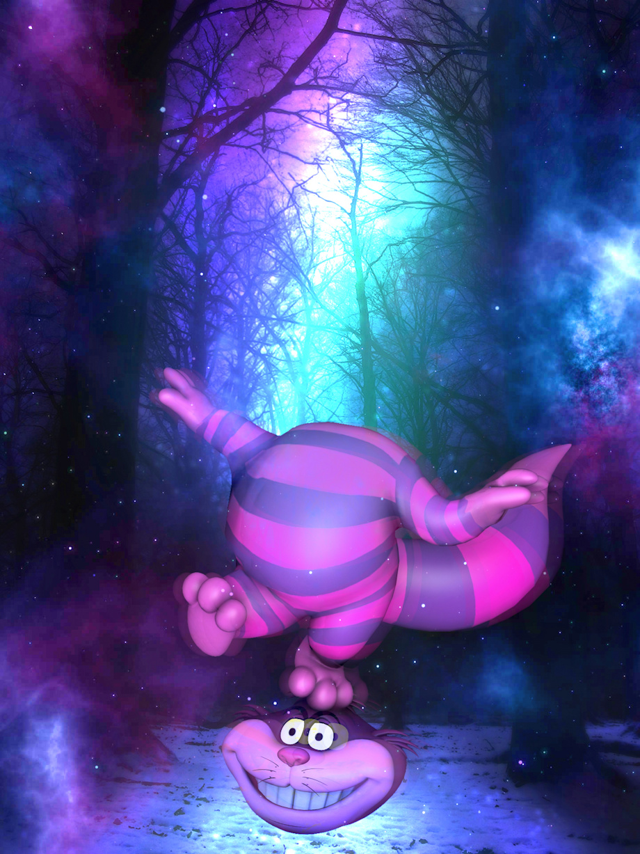 of his favorite (and also mine) character, The Cheshire Cat. Simple background, done in a day by myself on SFM and GIMP.