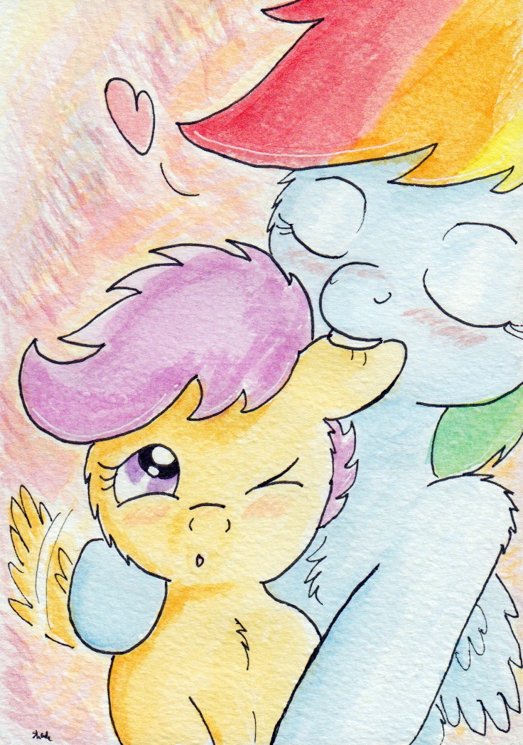 if dash taste like the rainbow what does scoot taste like? *nibbles the other ear* hmmm taste like starburst... would of never guessed *blushes getting an annoyed look from both dash and scoots* oh yeah you two where doing something.... I'll leave now *^^*
