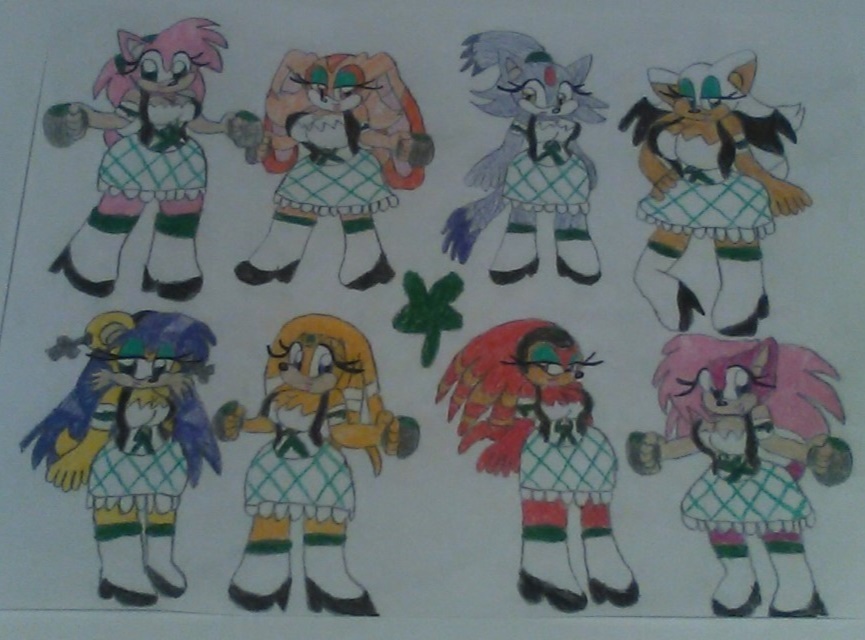 For St. Patrick's Day coming up. Amy, Cream, Blaze, Rouge, Mina, Tikal, Shade and Sonia as Bar Maids serving green beer. All of them are above the age of 21.