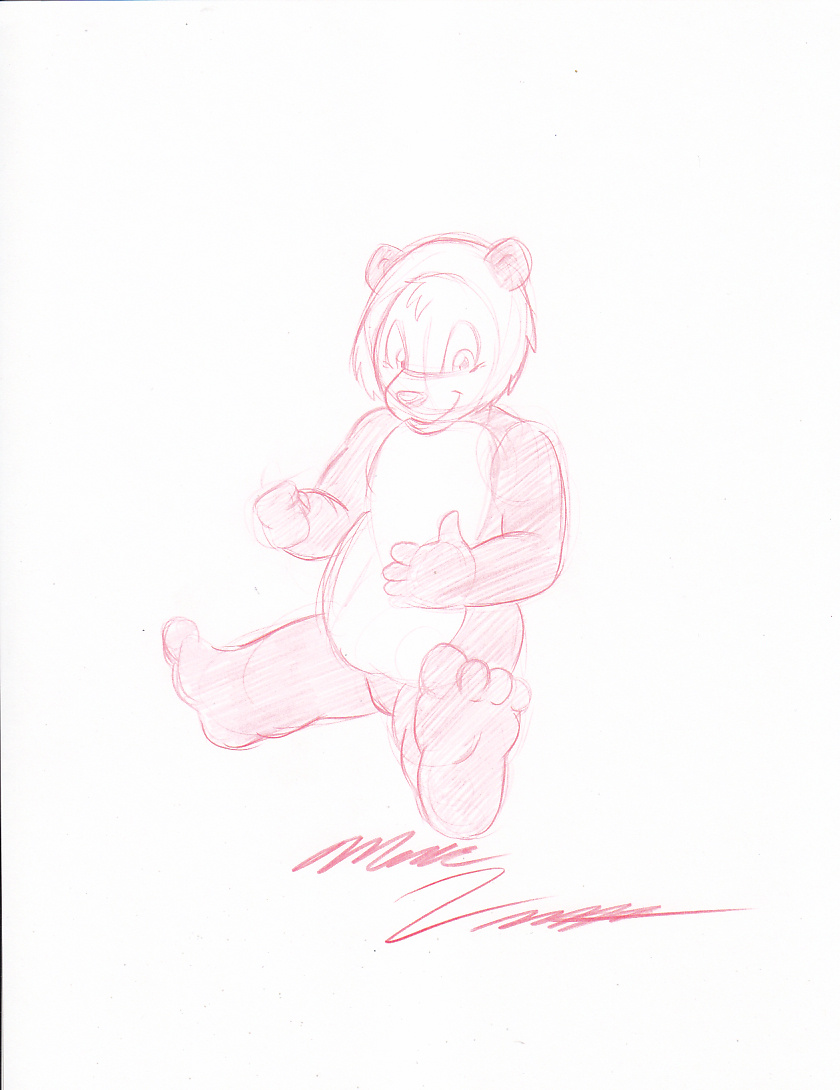 Teddy dressed up in a panda suit in an effort to entice the breeding efforts of the local panda sanctary.