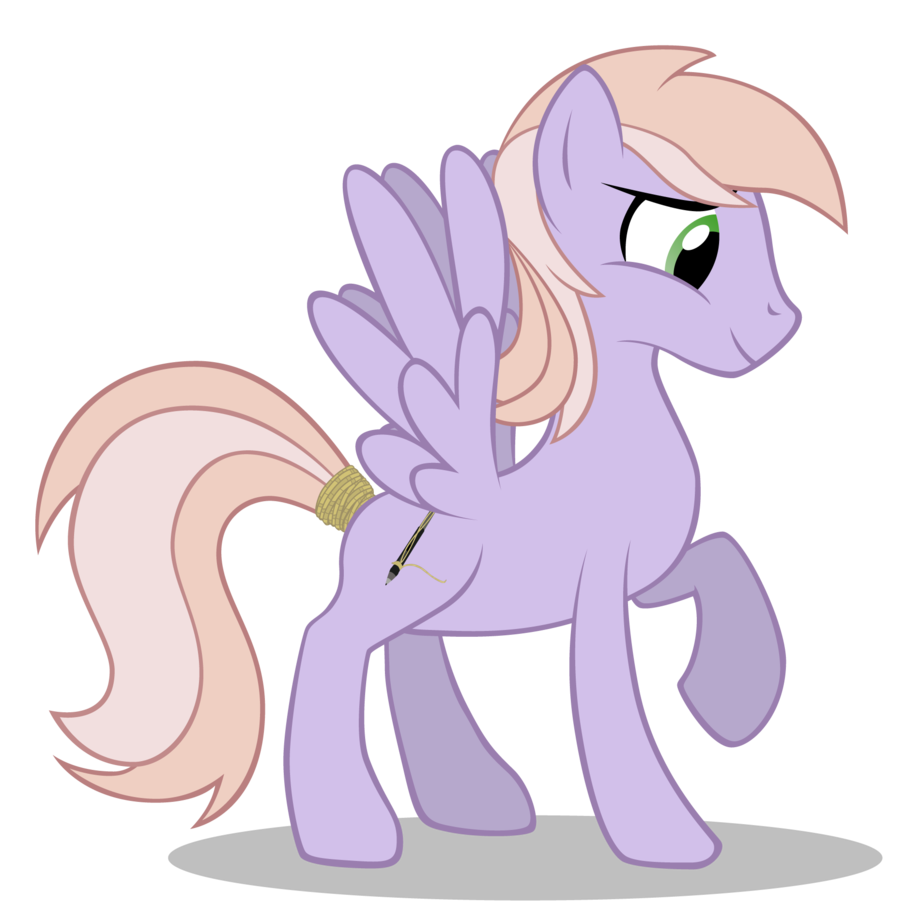He's rather skinny, bit short and his cutie mark is a tied-up tablet-pen. I'll call him Lavender. :)