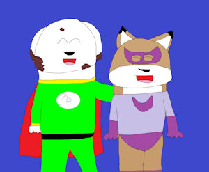 "Mr. Beaglesworth," Lunar Corgi said as she followed him. She landed in an alley where she caught him transforming, as an atom surrounded him, she saw his body becoming more muscular, his suit tearing away to reveal the green-and-yellow costume of Atomic Dog alongside the red cape and white emblem with his superhero initials.