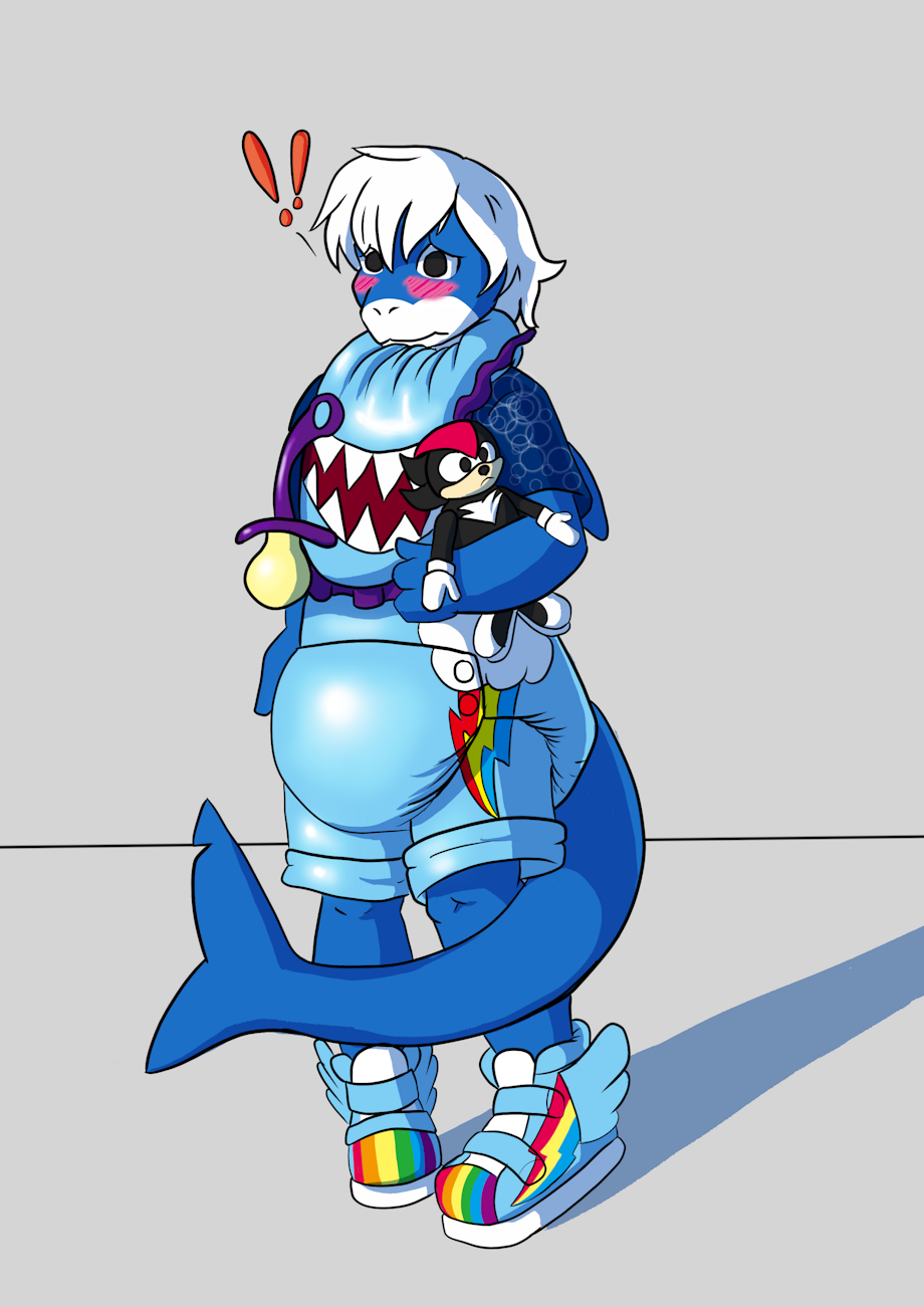 My favorite sharkie seems to have been caught all dressed up for daycare. Hope likes crinkling because he'll be doing a lot of it.