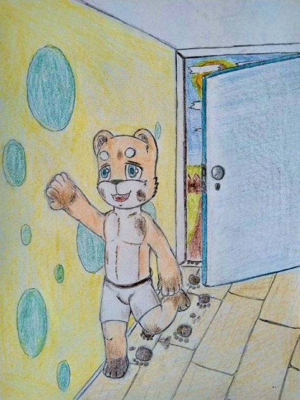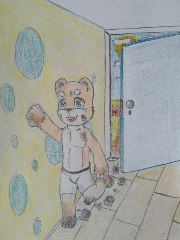 Coming home from playing outside all day, this boy is about to get a scolding, or maybe his big bro will lick him clean. Who knows :3