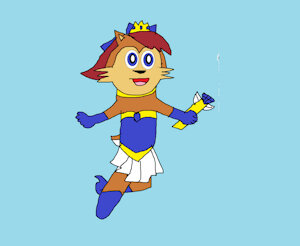 "Oh, yeah? Royal Sapphire, transform me," Sally said as she transformed into Sapphire Angel, her wand becoming a staff as the two began to clash, Fiona, or Grim Vixen as she is now known as, clashing her scythe with Sapphire Angel's wand, which was even used to make a blue magical shield when the vixen tried to slash at the heroine.