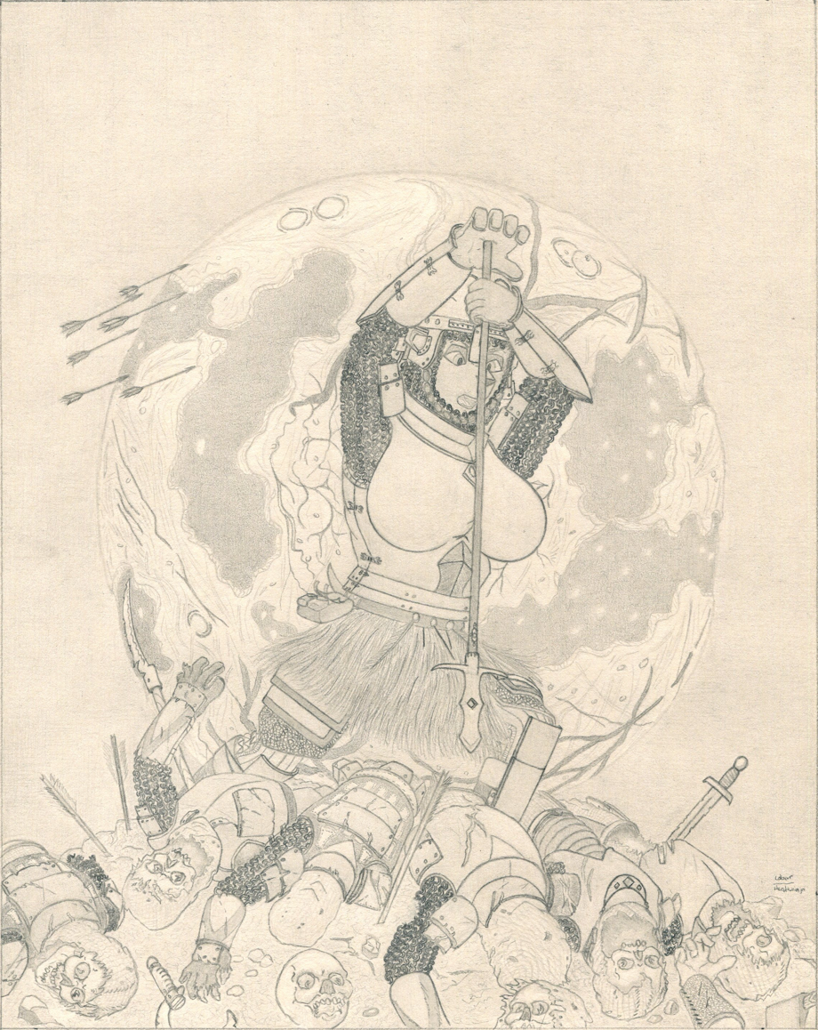 Jeez I can’t wait to re-draw this image on an 18inX24in in another seven years or so. This is a remake of an illustration I did back in 2015. Along with it being a tribute to the cover art of the Myth game from Bungie. More specifically Myth The Fallen Lords and Myth II SoulBlighter. Also a bit of a tribute to the Thief series as well. After all the haunts that Ka Sarra fights are my homage to the Hammer Haunts from Thief the Dark Project, Thief II the Metal Age, and Thief Deadly Shadows. Lastly I would say it is also meant to show how much I have progressed through the years and the gradual evolution of Ka Sarra (and CO.) Still I think I could do better at a few things. Also if anyone is wondering the moon in the background is a mix of Luna, Europa, and Enceladus respectively. I will upload the next variant with the title text later.