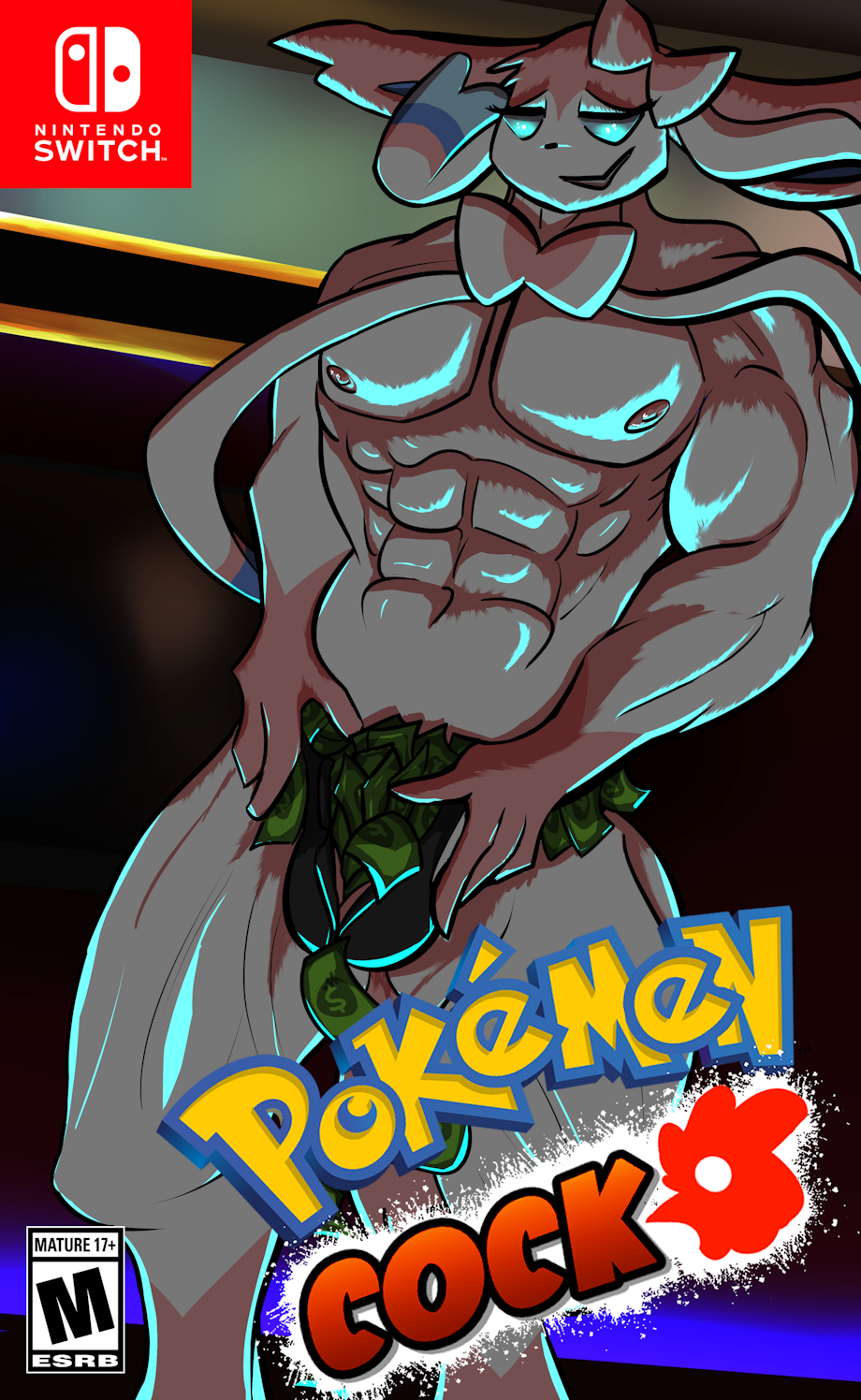 Here's a Sylveon who is a stripper at a gay bar. -w- It looks like his suit broke, what with all the bills stuffed in it. You'd better not be thinking of taking any of them. He works hard for the money, and those suits aren't cheap to replace. owo