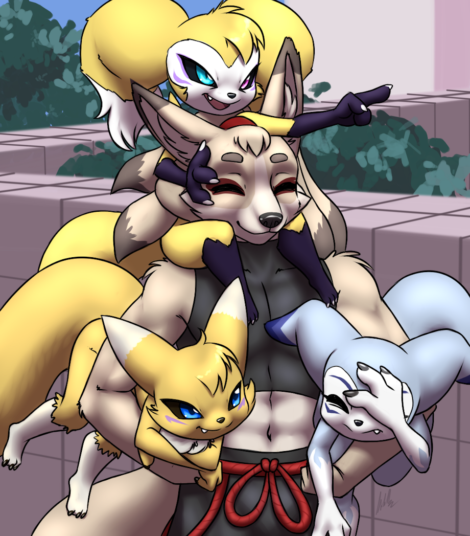 Stream commission for thegantian, of hteir OC with a handful of imps, off to do shenanigans.