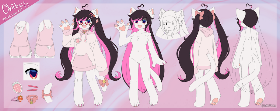 Chibs is a munchkin cat in her 20's who has a wild and excitable personality. She likes strawberries and sleeping a lot. She's only at 4'9", but is proud of it.